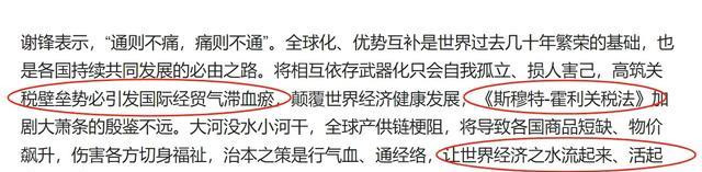 还强调“治本之策是让世界经济之水流起来”,更是拿出《斯穆特-霍利关税法》加剧大萧条的例子为鉴。
