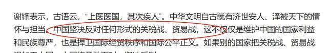 4月19日,在出席大使馆举办的“中医药文化开放日”活动上,谢锋大使引用中医的理论来形容当前的中美关税战。